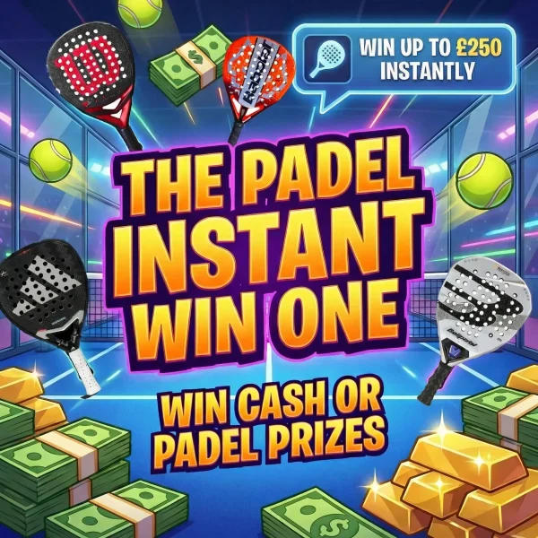 For just 10p per entry and an early bird price of only 5p you’ve got the chance to bag cash prizes and top-tier padel gear instantly.